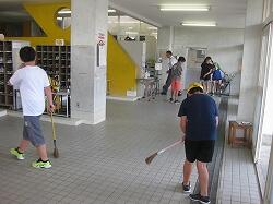 毎週月曜日と木曜日に、6年生が昇降口や1階廊下の清掃ボランティアをしています