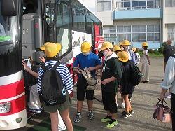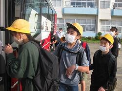 出発式の様子です。引率の先生や添乗員さんにあいさつ。