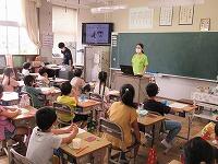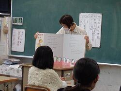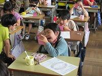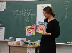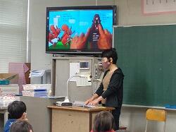 ペープサートで作った生活習慣に関する物語で、児童たちはとても集中して視聴していました