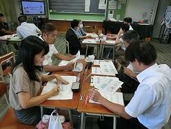 養護教諭と保健委員会の児童から本校の実態について報告をしたあと、参加者でグループごとに協議をしました