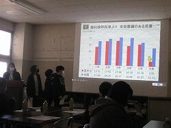 2班からは、「生活習慣に関する情報提供や個別指導の実施、子どもと保護者が一緒に就寝すること、交流学習を通して小学生が中学生の生活を参観すること」との発表がありました