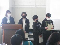 3班からは、「中学校での歯磨きタイムの位置づけ、メディア視聴のルールの確立、地域におけるあいさつ推進(見守り・非行防止)」との発表がありました