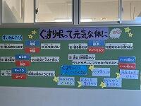 「たのしいふゆやすみ」にするために大切なことを、サンタさんが教えてくれたので、ぜひ保健室前に見に来てください。
