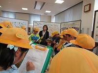 クリーンプラザで説明を聞いています。ごみの重さを量るはかりにのりました。