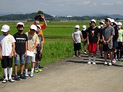 朝から元気に歩いて西方小水田へ!!お見送りの6年生、ありがとう!!