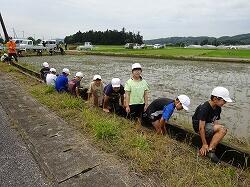 植え終わりには、脇の水路で足を洗いましたが、「気持ちい~~い」と大喜びでした