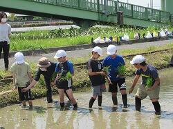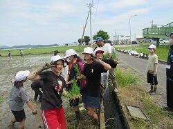 6月1日(木)に、歩道橋西の田んぼをお借りして、5年生が田植え体験をしました。