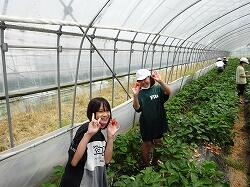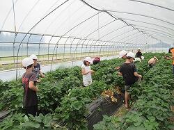 田植えの後は、頑張ったごほうびに苺狩りをしました。高級スカイベリーをたくさん摘ませていただき、おいしい苺を堪能