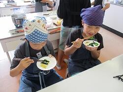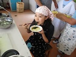 ほうれん草を茹でたグループは、早く終わったため、試食も早くなりました