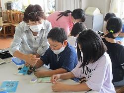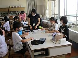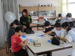 裁縫セットの準備から、糸の通し方、玉結びや玉止めの練習等、グループに一人ずつ付いてくださり、丁寧にご指導いただきました。(教育実習生も参加!!)