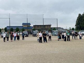幸いにも曇り空なのですが、気温的にはちょうどいいのでよかったです。児童は、全員参加で、みんな元気です