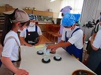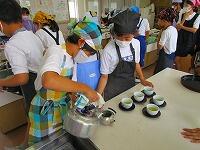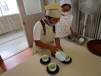 5年生が家庭科の時間に、ガスコンロを使ってお湯を沸かし、緑茶を入れる実習をしました