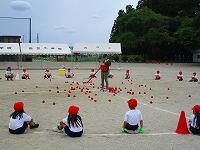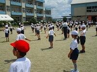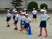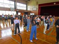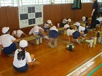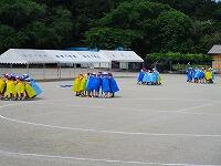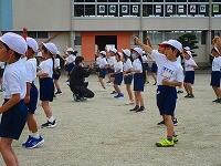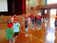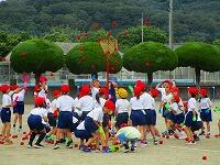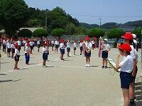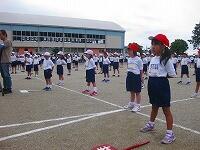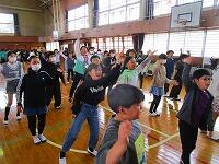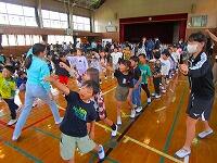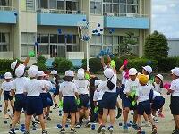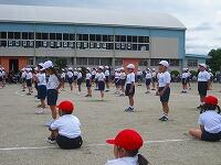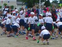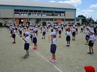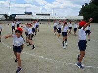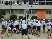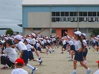 1・2・3年生が、ダンス玉入れの練習をしていました。