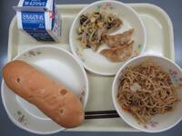 減量アップルパン 牛乳 焼きそば 揚げ餃子 野菜のごま油炒め
