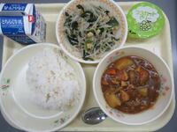 ごはん 牛乳 夏野菜カレー ほうれん草とコーンのソテー 冷凍みかん
