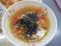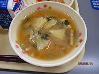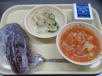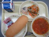 コッペパン チョコレートクリーム 牛乳 鶏肉のハーブ焼き 大根と茎わかめのサラダ ミネストローネ