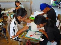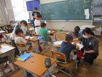 児童の手が止まってしまったとき、声をかけて丁寧に教えてくださいます