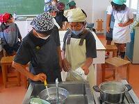 前の時間に、コンロの使い方を練習していたので、今日は手際よく、安全に火をつけることができました。