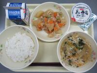 ごはん 牛乳 鶏肉のから揚げ ポン酢和え いなか汁
