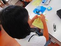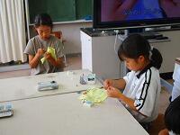 教材サイトの映像を見ながら、やり方を確認していくのですが、やってみると思った以上に難しく、児童は悪戦苦闘していました