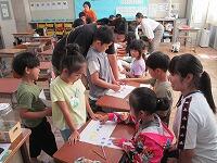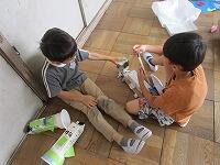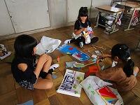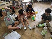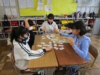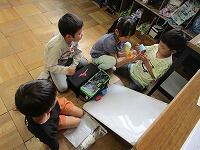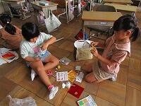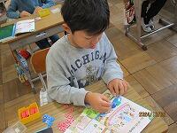 1組は、牛乳パックを使って こまや飛び跳ねるおもちゃを作っていました。2組は、言葉集めに夢中になって、たくさん集めていましたよ