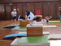 台上前転は、「落ちたらどうしよう」「痛そう」などと恐怖を感じてしまいがちですが、無理に挑戦させるのではなく段階を踏んで丁寧に練習すれば、徐々に慣れてきます。