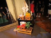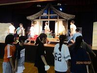 終了後残った6年生が、お礼の言葉を伝え、劇のセットを見せていただきました。軍手で作った里芋や、舞台が回転する仕組みなど、興味津々で見ていましたよセットのつくりを見る機会は、あまりありませんね。よい経験ができました