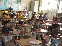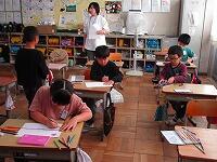 様子を見ていた5年生も、「スマイル、スマイル」「1+1=~~~!」などと、笑いを誘っていましたよ