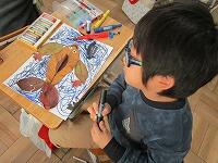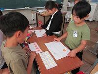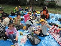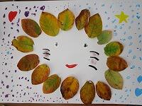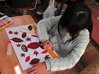 1年生が、紅葉したきれいな色の葉を使って遊びました