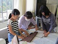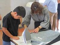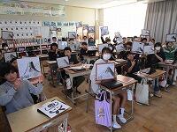 【6年生】社会:水墨画を額に入れて飾る準備をしました。作品として、とても素敵になりましたね大満足の6年生です