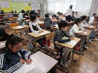 6年生が、引率の先生が撮影した修学旅行の写真を見ながら思い出に浸っていました。