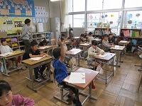 いよいよ、1年生にとって、一番難しいと言われている「繰り下がり計算」に入りました。担任も、デジタル教材や半具体物を使って、児童が理解しやすい工夫をしていました