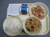 ごはん 牛乳 鶏肉と大豆の味噌がらめ やみつききゅうり すまし汁
