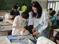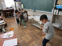 2年生が生活科の時間に、身近なものを使って動くおもちゃを作っていました。