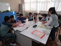 2組:算数です。速さと時間、道のりの関係をもとに、距離を計算していました予定の時間にたどり着けるかどうか、日常でありがちな問いに答えていました