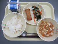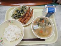 ごはん 牛乳 シシャモフライ 小松菜とコーンのソテー 具だくさん味噌汁