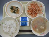 ごはん 牛乳 セルフそぼろ丼の具 もやしとほうれん草の醤油和え 豚汁