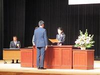 (1)創立150周年記念事業において、教育備品等をご寄贈いただいたことにより、150周年記念事業実行委員会様へ、感謝状が贈られました。授与代表は、PTA会長様です。