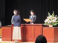 最後に、代表児童がお礼の言葉を伝え、花束を渡しました。