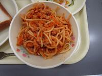 ミートソーススパゲティは、いつものひき肉に加え、大豆ミートも使用しています。