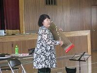 その後、教科書にでてくる「さくら さくら」の模範演奏です。主旋律と伴奏に分かれ、息の合った演奏を披露なさいました