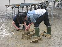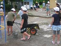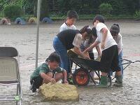 児童は、軍手とシャベル(スコップ?)を使って、ぐいぐい抜いていきました。