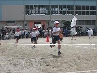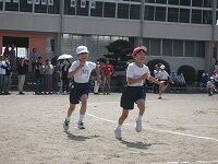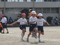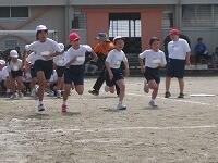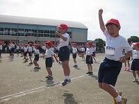 2時間目には、1・2年生が徒競走(かけっこ)の練習をしていました。