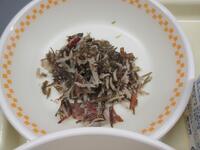 今日は鶏肉のハーブ焼きは、調理場でバジルと白ワインで下味をつけて焼き上げています。バジルはシソ科の植物で、さわやかな香りがあります。