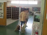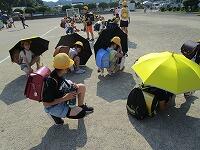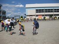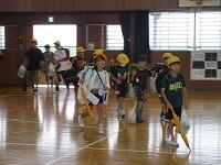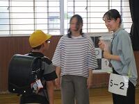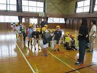避難訓練は、1回目の時よりも慌てることなく、静かに避難できました。週末であり、引き渡し下校ということで、ランドセルや洗濯物等を持っての避難となりました。