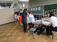 たくさんの児童が集まったので、長蛇の列になりましたが、「お目当ての本が見つかった」と、笑顔で報告してくれました