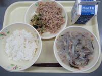 ごはん 牛乳 プルコギ 小松菜のナムル わかめスープ