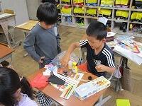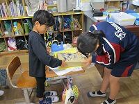 3年生が、国語の学習で、生き物(虫)ランドの招待状を書いていました。