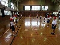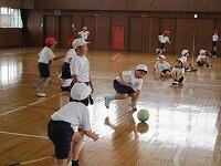 体育の授業では、学年ブロックごとに団体競技や表現運動の練習が進められています