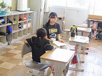 を変える話し方や、授業中、児童の作業時間をたくさんとる等、あの手この手で工夫しています